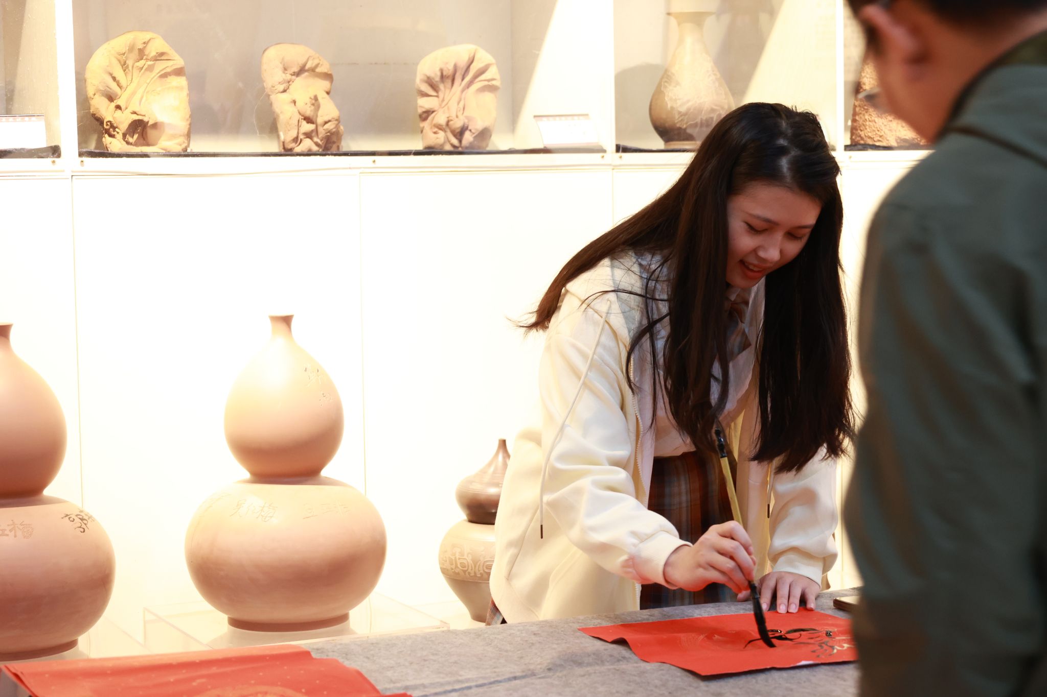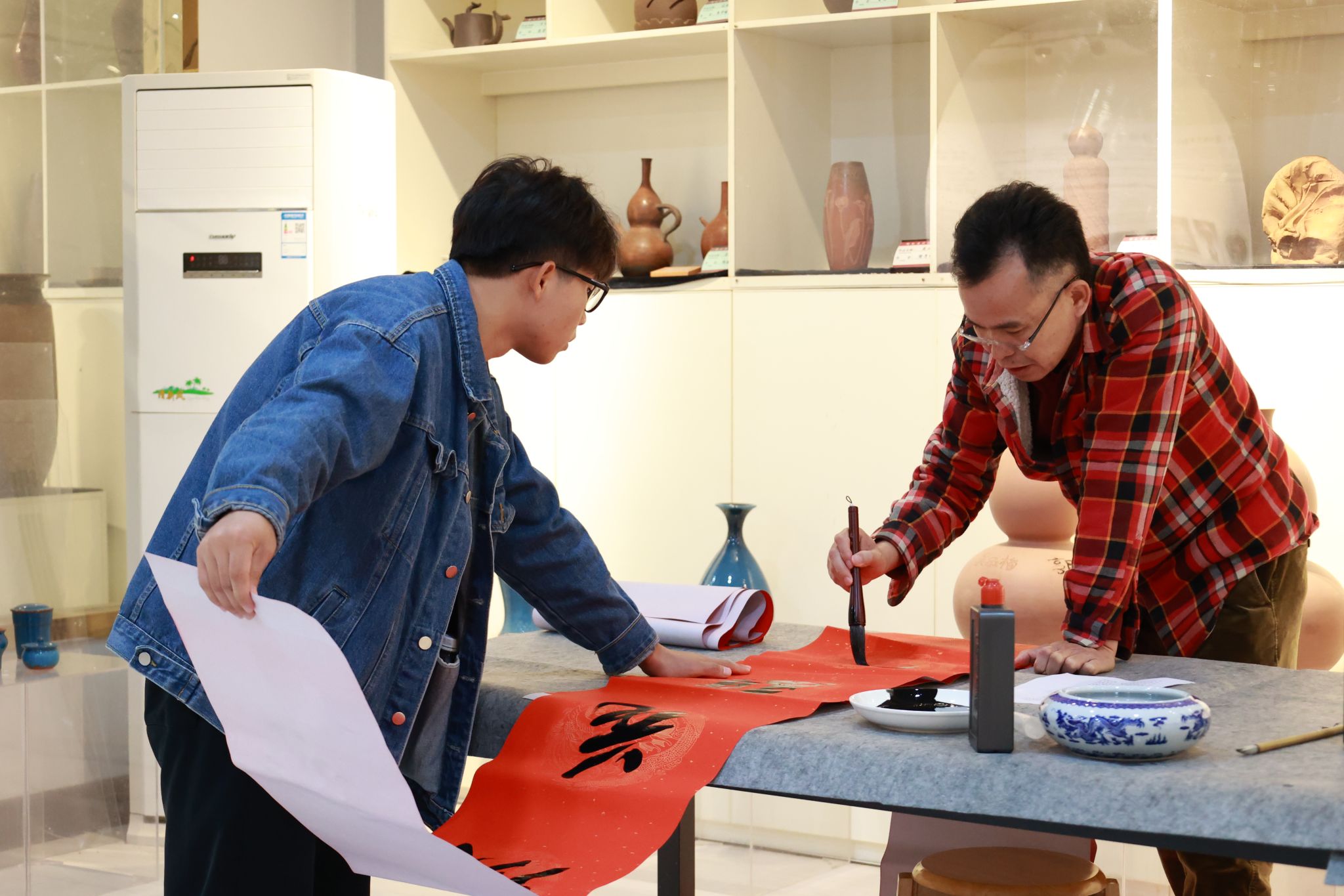 师生挥毫泼墨,把对新年的诚挚祝愿和美好心愿融入笔墨中